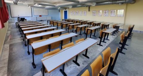 The Department of Speech Therapy has three well-equipped lecture rooms located on the ground floor. These rooms are accessible to people with disabilities and equipped with computers and projectors. Lecture rooms Δ:0.08 and Δ:0.09 have a capacity of 72 people (each), while lecture room Δ:0.11 has a capacity of 90 people.